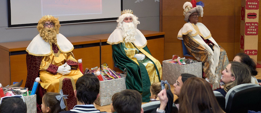 Melchor, Gaspar y Baltasar comenzaron a repartir ya los primeros regalos ayer entre los chavales del Colegio de Ingenieros Técnicos Industriales, en sus sedes de Cartagena y de Murcia.