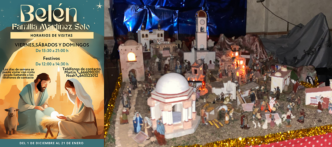 Martín García Martínez, junto con su primo Noah Soto Ramírez han llevado a cabo el montaje de un nacimiento particular inspirado en el barrio de Los Dolores, destacando la histórica y emblemática torre de su iglesia. Los interesados pueden visitar el montaje belenista, ubicado en la Barriada de Hispanoamérica, hasta el día 21 de enero.