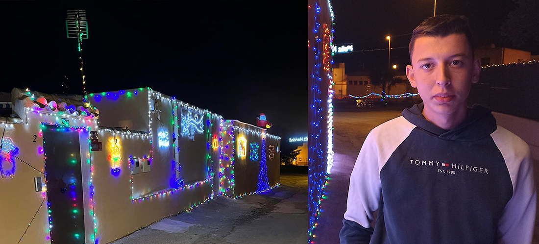 El joven, de 16 años de edad, es un enamorado del espíritu de estas fechas desde bien pequeño y cada año va ampliando el montaje luminoso que rodea su casa, habiendo alcanzado cerca de medio kilómetro de cableado con luces de colores y de imágenes en movimiento, además de instalar como antesala un árbol con dos renos.