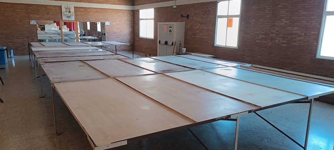 Antonio Ferrer, presidente de la Asociación Belenista de Cartagena, ha hecho pública esta mañana la buena noticia de que, tras un año de ausencia, el gran montaje belenista albujonero regresa esta próxima Navidad. La foto muestra el inicio de los trabajos.
