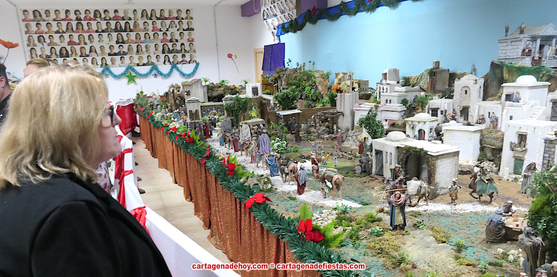 El monumental montaje de la Asociación Belenista 'El buen pastor' en el patio de la iglesia de Nuestra Señora de los Dolores recibió a los participantes en la ruta por los 'nacimientos' de Cartagena organizada por la concejalía de Festejos.