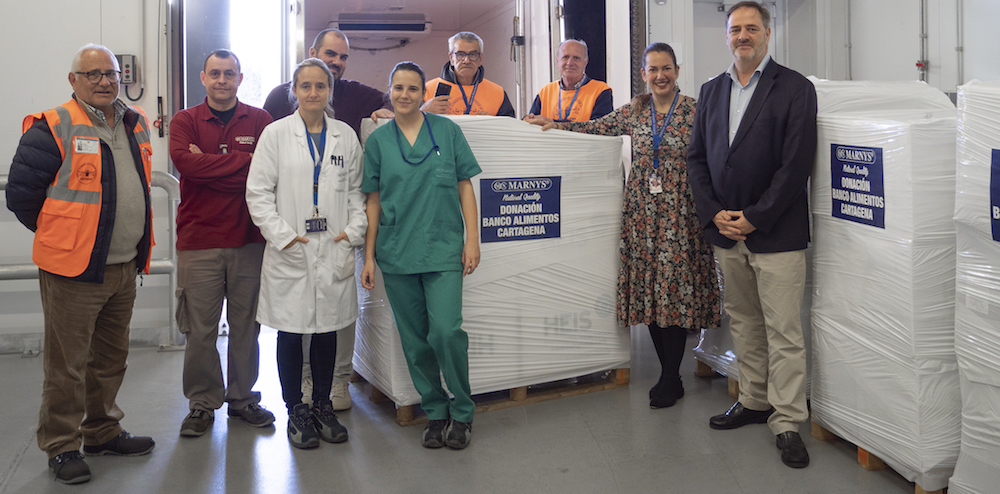 Marnys dona más de 2.100 kilos de productos de primera necesidad para el Banco de Alimentos de la Región de Murcia de Cartagena. La empresa, con la campaña llevada a cabo con todo su equipo humano, ha triplicado lo aportado por sus colaboradores y han logrado aumentar las cantidades donadas con respecto a años anteriores.