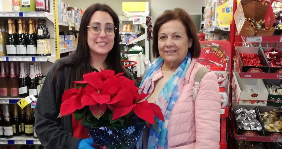 La asociación de vecinos prolonga lo que ya es una tradición de obsequiar con la flor de Navidad a los comercios para desearles lo mejor para estas fechas navideñas y para el nuevo año.