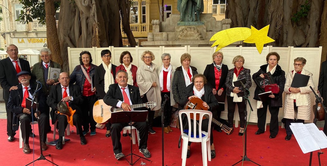Los clubes de la tercera edad de Molinos Marfagones y Barriada Virgen de la Caridad y la rondalla de Alumbres han participado, junto a escolares del colegio Santa Joaquina de Vedruna, en una actividad intergeneracional, organizada por la concejalía de Servicios Sociales.