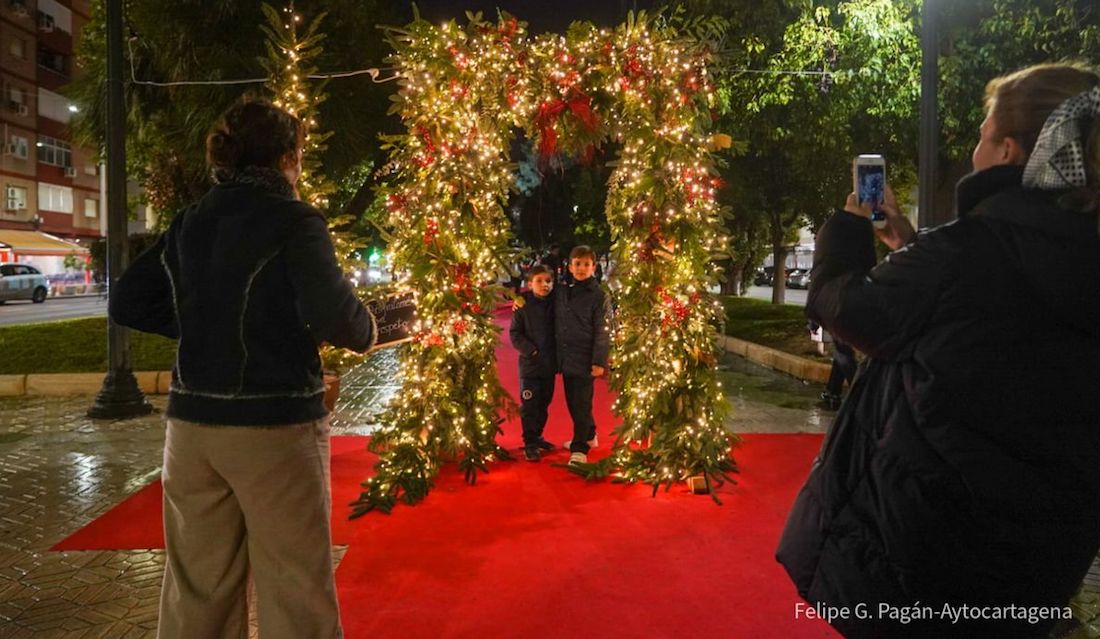 El Ayuntamiento de Cartagena efectuó anoche el encendido navideño de esta emblemática avenida y de su paseo central, extendiéndose la decoración a los bajos comerciales por iniciativa de la asociación de vecinos, que ha creado un concurso a tal efecto.
