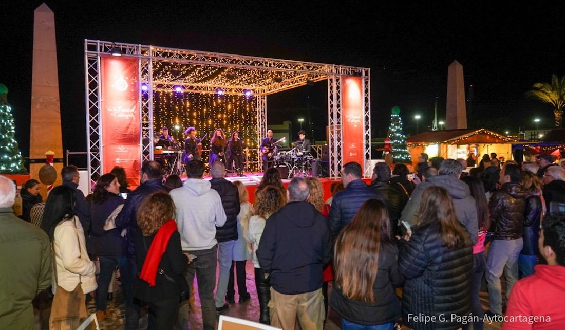 El grupo ‘Belter Souls’ actuó en Plaza Mayor anoche con temas pop vinculados a la Navidad, dentro del programa organizado por el Ayuntamiento de Cartagena y la Autoridad Portuaria.