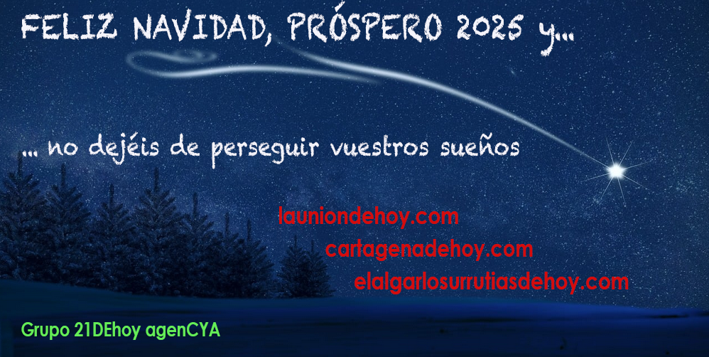 Los que trabajamos para los periódicos digitales (Cartagena de Hoy, La Unión de Hoy y El Algar-Los Urrutias de Hoy) y revistas de papel de la empresa 21DEhoy agenCYA os deseamos a todos los vecinos de nuestras zonas de actuación las mayores alegrías para estas entrañables fechas. ¡Os lo merecéis!