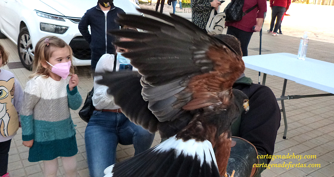 Una exhibición de aves en la explanada interior del colegio Miralmonte será, desde las 16.30 y durante una hora, la antesala del cuentacuentos del ‘Gato con botas’ que se ofrece en la barriada de Cartagena Norte, dentro del programa organizado por la comisión de fiestas en colaboración con la concejalía de Festejos, la asociación de vecinos y la revista ‘El Puente’, en el 15 aniversario de la revista.