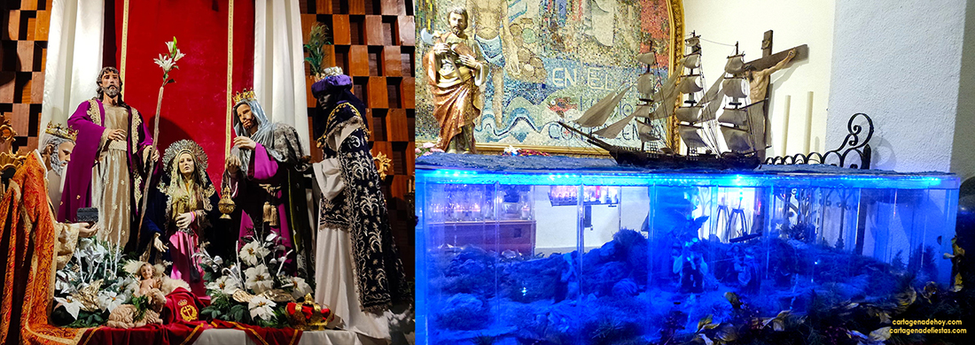 La parroquia castrense de Santo Domingo, de la calle Mayor de la ciudad de Cartagena, luce desde hace un lustro un Belén bajo el agua que es montado por personal de la Armada y que se encuentra en la entrada, teniendo entre sus elementos las tradicionales figuras y el Submarino Peral. Dentro, en el altar, luce un gran Nacimiento con la sagrada familia y los Reyes Magos formado con imágenes de culto.