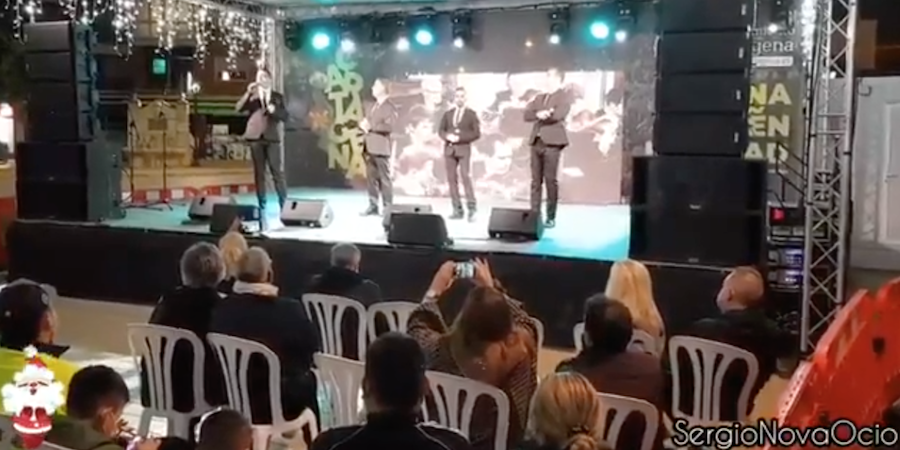 La foto muestra el escenario de la plaza de España durante la actuación de ‘In vivo’. Pinchar AQUí para ver la grabación efectuada por Nova Ocio