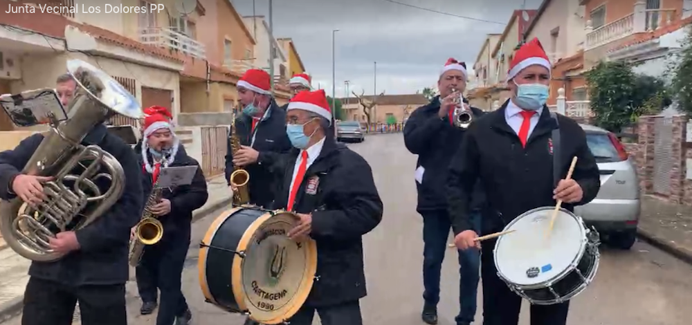 Los Dolores se anima por Navidad. Las charangas han hecho las delicias de los vecinos. Las bandas de música fueron acompañados por directivos de la Asociación de Vecinos de Los Dolores, los cuales también agradecieron su presencia y su correspondiente saludo al Ayuntamiento de Cartagena.