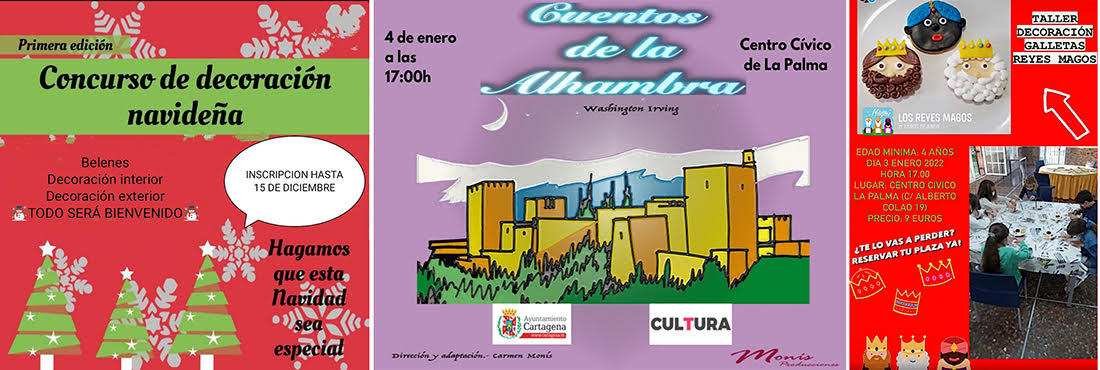 Cartagena de Hoy ha habilitado en su cabecera un bánner del Ayuntamiento de Cartagena que facilita a sus lectores un cómodo acceso en cualquier momento para conocer qué actividades están previstas cada día y en que lugares de nuestro municipio. Hoy, por ejemplo, hay 'Zambomba navideña' de los alumnos del Conservatorio de Música en la plaza del Ayuntamiento (17 horas) y taller infantil 'Arteando' en la biblioteca de Los Dolores (18 horas).