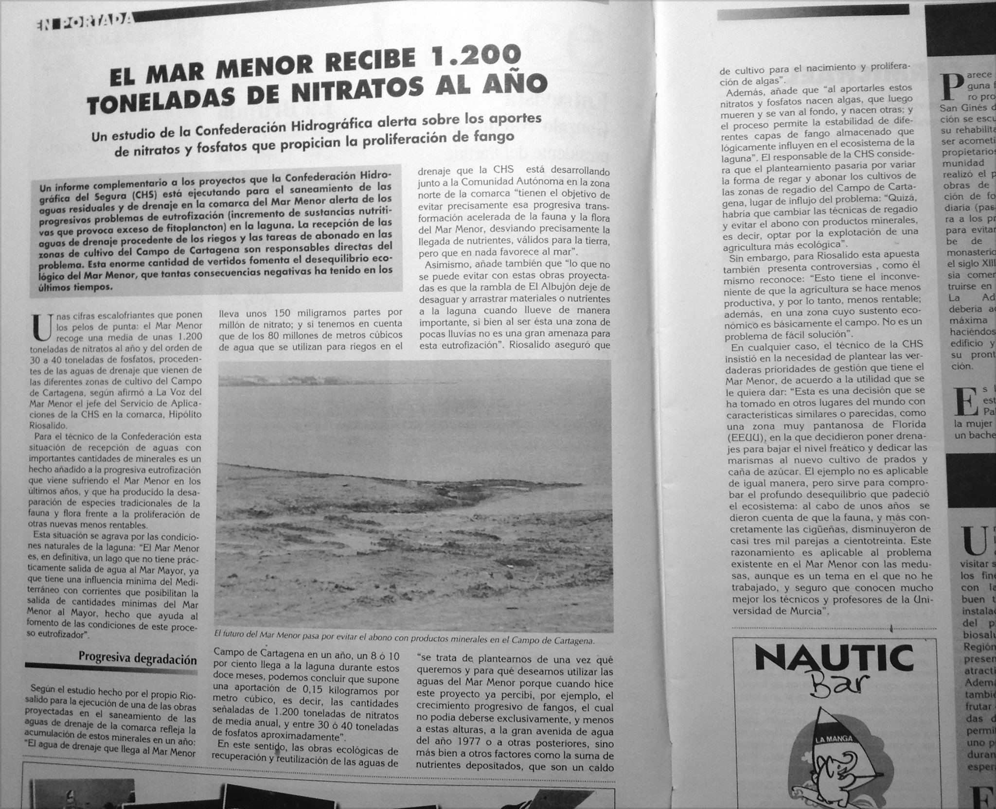 Artículo de 1997 en 'La voz del Mar Menor' aportado en redes sociales por Joaquín Conesa Meroth:
