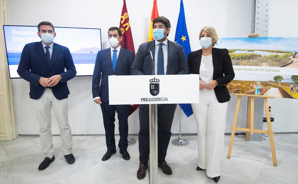 El presidente de la Región de Murcia, Fernando López Miras, anunció hoy la “mayor renaturalización del Mar Menor” con la expropiación de 3,1 millones de metros cuadrados en El Carmolí, Cartagena, para recuperar “un ecosistema único en el mundo y evitar las presiones humanas en este entorno privilegiado. Queremos convertir el humedal de El Carmolí en un espacio natural protegido que poder conservar y visitar, para convertirlo en referencia nacional tomando como ejemplo uno de los mayores humedales de Europa, las Tablas de Daimiel”.