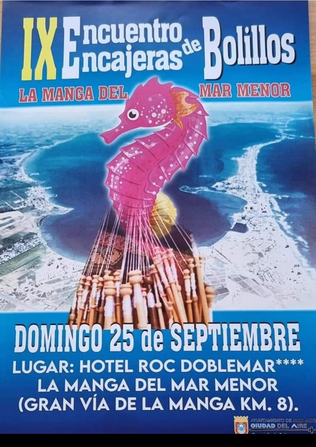 Este domingo, 25 de septiembre, tendrá lugar en el IX Encuentro de Encajeras de Bolillos, en La Manga del Mar Menor. El evento tendrá lugar en el hotel Alua Sun Doblemar, en el kilómetro 8.