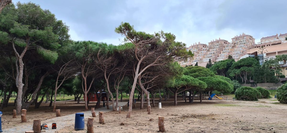 Los operarios del servicio de Parques y Jardines del Ayuntamiento de Cartagena han retirado 30 pinos que e había secado y preparan ya el terreno para repoblar con especímenes jóvenes esta zona del Mar Menor situada en La Manga.