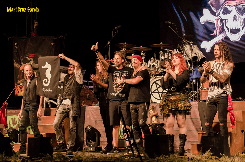 La mítica banda de rock ha actuado en el polideportivo de Los Alcázares, donde, entre otros temas, interpretó la conocida ‘La costa del silencio’, que crearon con motivo del desastre ecológico generado por el ‘Prestige’ en Galicia. Al concluir, uno de sus componentes, el violinista Moha, se dirigió al público para decir: “Esta canción la compusimos hace 10 años y en este tiempo parece que no hemos aprendido…”, para en ese momento sacar la bandera que se ha convertido en un emblema en la lucha por recuperar la laguna salada, como refleja la fotografía captada por Mari Cruz García.