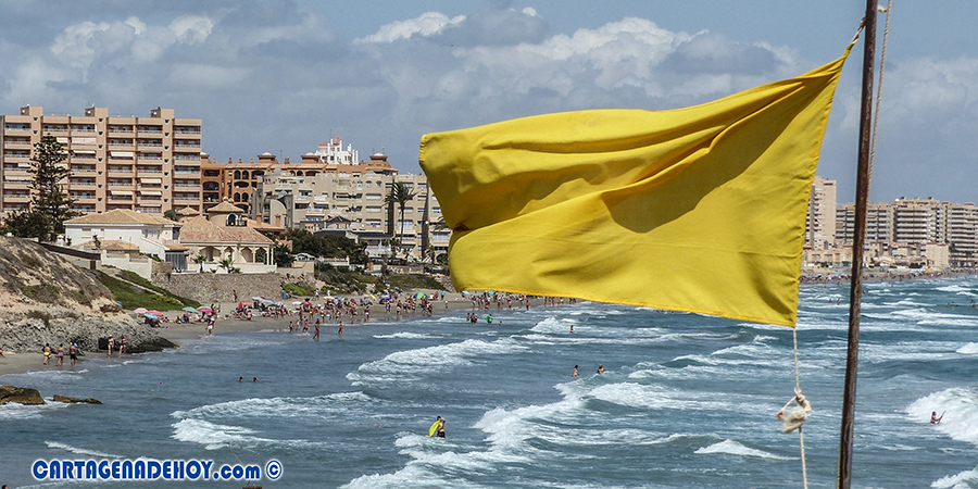 El litoral de Cartagena ha abierto hoy con una bandera roja y cinco amarillas, pero sobre las dos de la tarde, se han tenido que balizar zonas de Galúa y Calblanque para evitar el baño por convertirse en zona peligrosa.