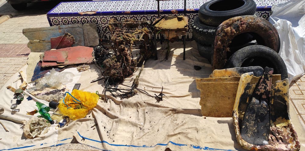 La Federación de Actividades Subacuáticas de la Región de Murcia (FASRM) ha desarrollado hoy la segunda edición de una 'macro-limpieza' de fondos marinos que ha reunido a 18 centros de buceo y 40 barcos, con unos quinientos buceadores. Se dispusieron contenedores donde se depositaron los contaminantes extraídos del mar. Los voluntarios retiraron plásticos, envases, vidrios y otros residuos como sillas y restos de obras.