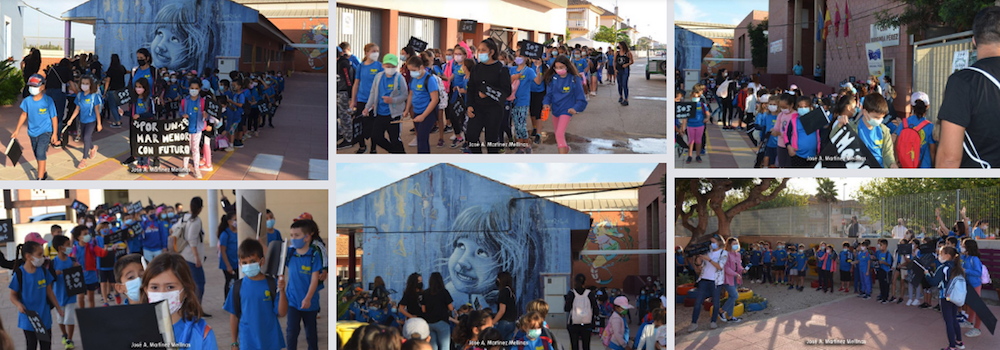 Los alumnos del colegio Virginia Pérez, junto a toda la comunidad educativa del centro, han protagonizado un pasacalles por El Algar para reivindicar la recuperación de la laguna salada.
