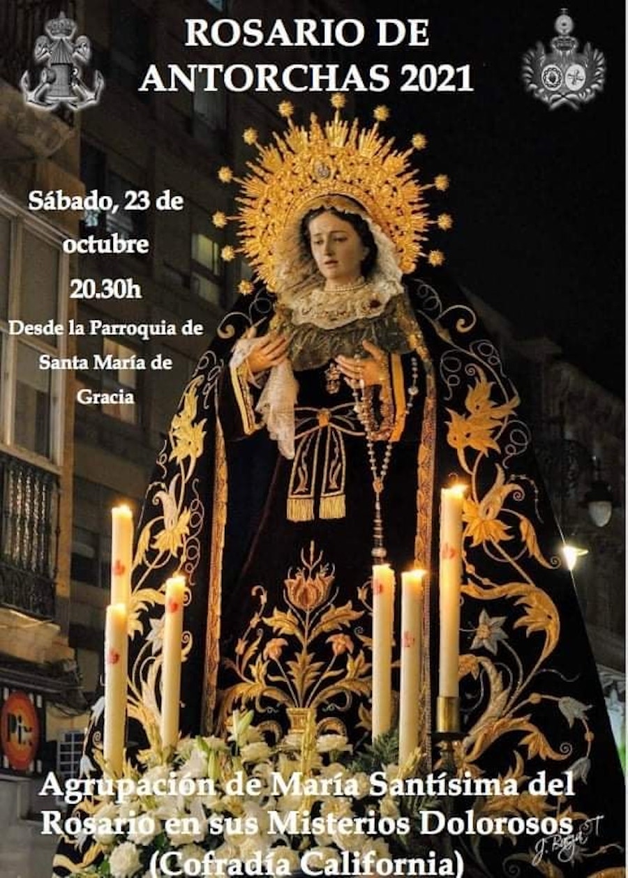 La Agrupación de María Santísima del Rosario en sus Misterios Dolorosos organiza este próximo sábado, a las 20.30 horas, el tradicional 'Rosario de antorchas' por las calles cercanas a la iglesia de Santa María de Gracia.