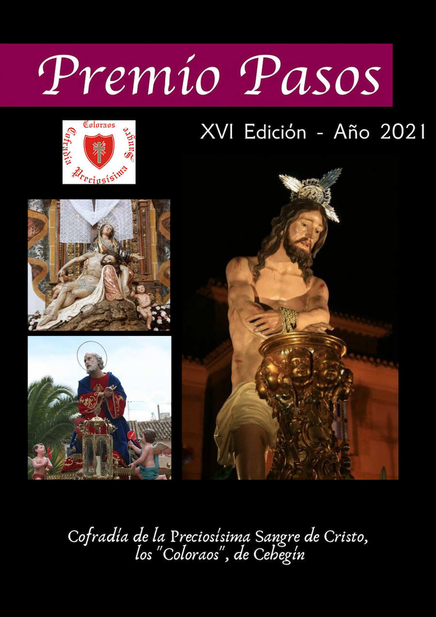 El sábado 13 de noviembre es la fecha prevista para la celebración de los actos de homenaje y Gala de Entrega del Premio PASOS 2021 a la Cofradía de la Preciosísima Sangre de Cristo de Cehegín.
