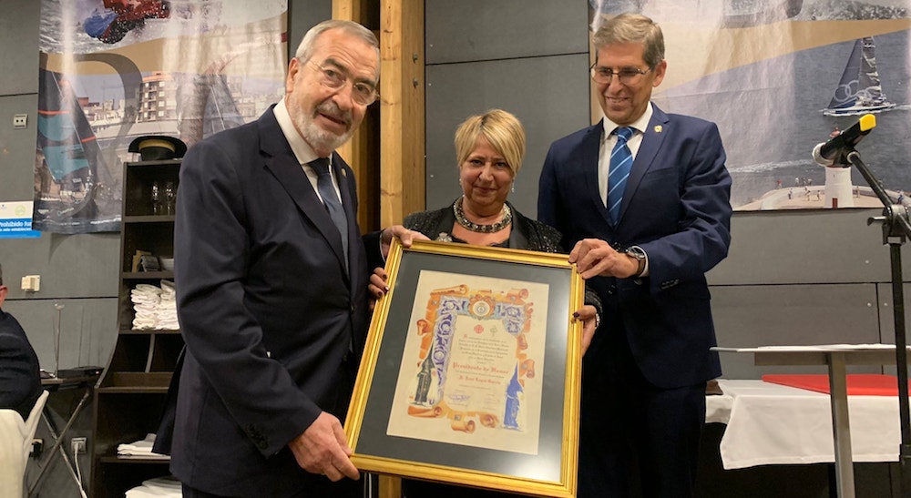 La agrupación del Santo Sepulcro y Expolio de Cristo de la Cofradía Marraja ha entregado el nombramiento a quien ha sido su presidente durante diecisiete años, y a quien se observa junto al hermano mayor de la hermandad de Jesús Nazareno, Francisco Pagán Martín-Portugués.