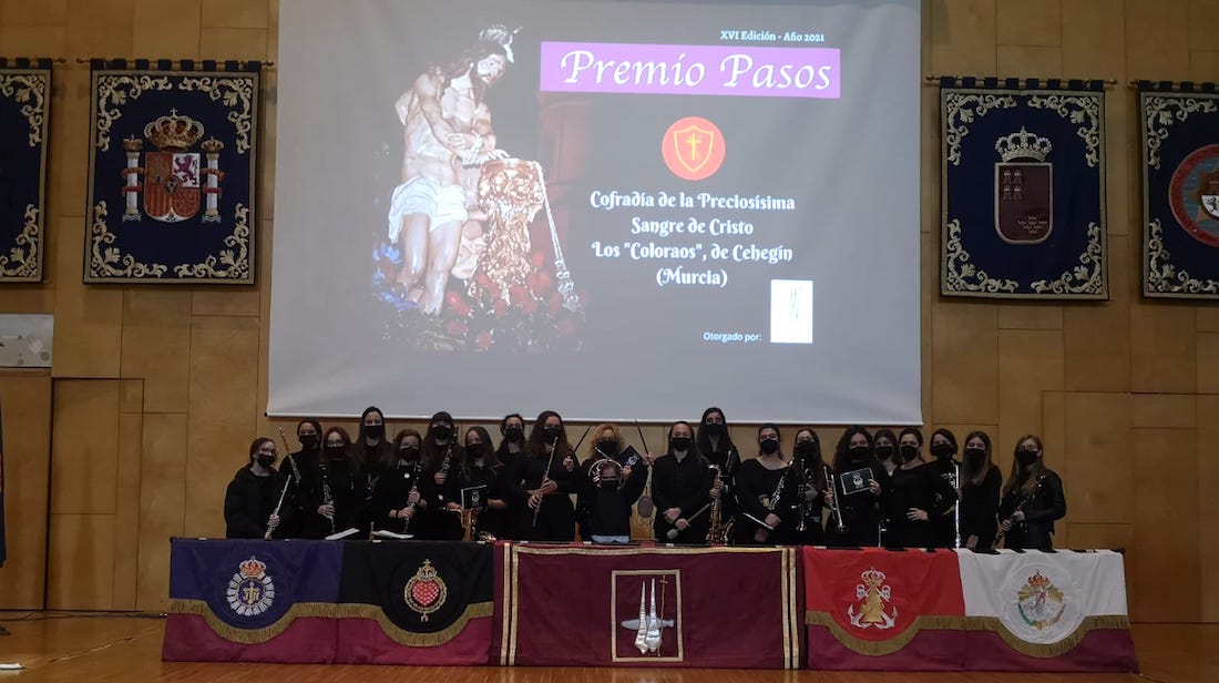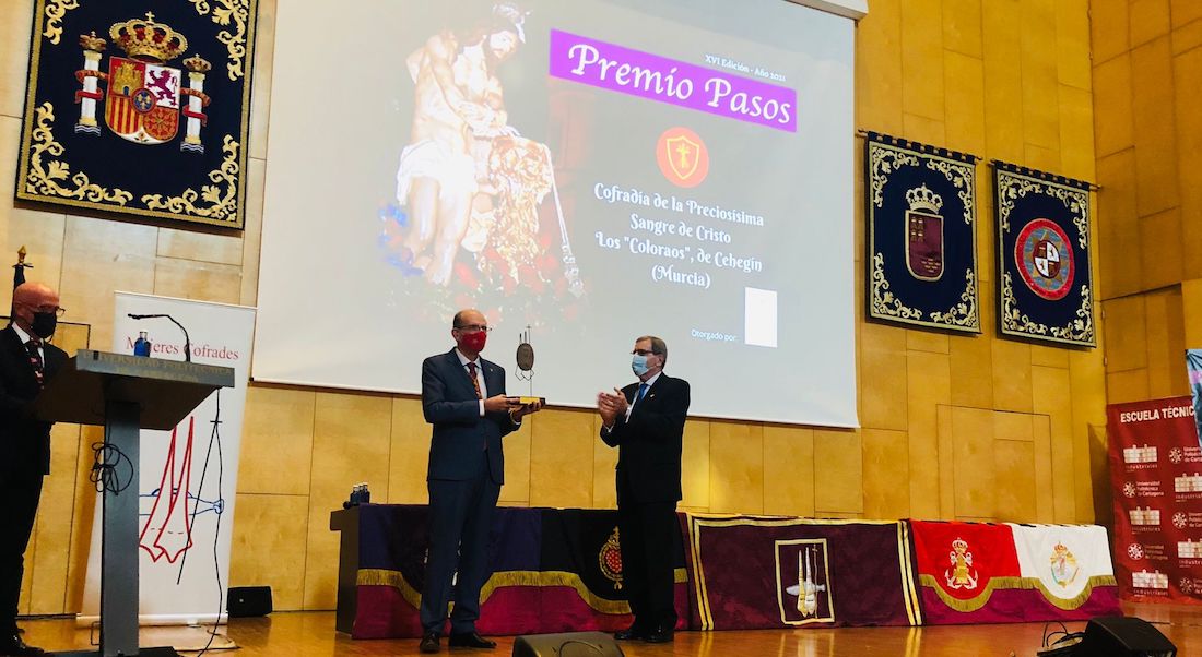 El pasado sábado 13 de noviembre tuvo lugar la jornada de entrega del Premio PASOS 2021 a la Cofradía de la Preciosísima Sangre de Cristo, de Cehegín (Murcia), premio que otorga la Asociación Mujeres Cofrades de Cartagena.