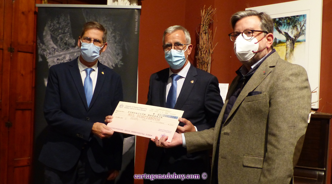 A continuación, el dinero recogido entonces (1.200 euros) fue entregado, con presencia del hermano mayor y del tesorero de la agrupación (Francisco Llamas), mediante un cheque gigante a Pedro Ferrández, presidente de la Fundación Marraja, Pedro Ferrández, quien recordó que los marrajos "tenemos una quinta procesión, que es la labor solidaria durante todo el año, albor que recompensa y dignifica. Debemos conseguir que nos conozcan tanto por nuestras procesiones como por nuestra labor social" y expresó la ilusión "por un proyecto inmenso como es "la casa hogar". Ferrández recordó que los marrajos, hace mucho tiempo, "daban botellas con vino del Campo de Cartagena con una etiqueta en la que figuraba el año 1.565. Con esta iniciativa se recupera el vino marrajo", dijo.
