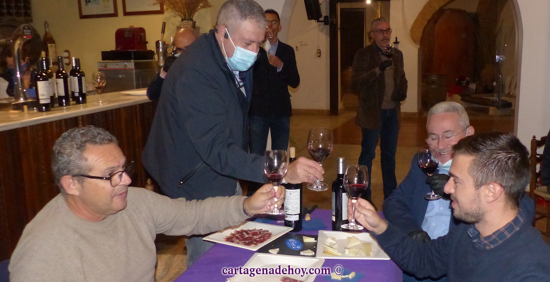Ahora vamos a centrarnos en los tres caldos de 'Nigras Rosas', elaborado por Bodegas Bleda, prestigiosa y centenaria bodega de la denominación de origen Jumilla. "Estamos en la cuarta generación de bodegueros y vinicultores, habiendo sido pioneros en el embotellado del vino", dijo Antonio José Bleda Jiménez, gerente y propietario, quien estuvo acompañado por Pascual Tomas Solaz, enólogo y director técnico de la bodega, y de José Marín García, gerente de la Vinacoteca Cabaña de Saura. Ellos fueron los encargados de explicar a los invitados al actos las características y bondades de los vinos seleccionados por la agrupación, que fueron saboreados con el acompañamiento de jamón y quesos de oveja (de la marca 'Ruperto' de El Mirador de San Javier), degustación que cerraron los tradicionales cordiales de almendra.