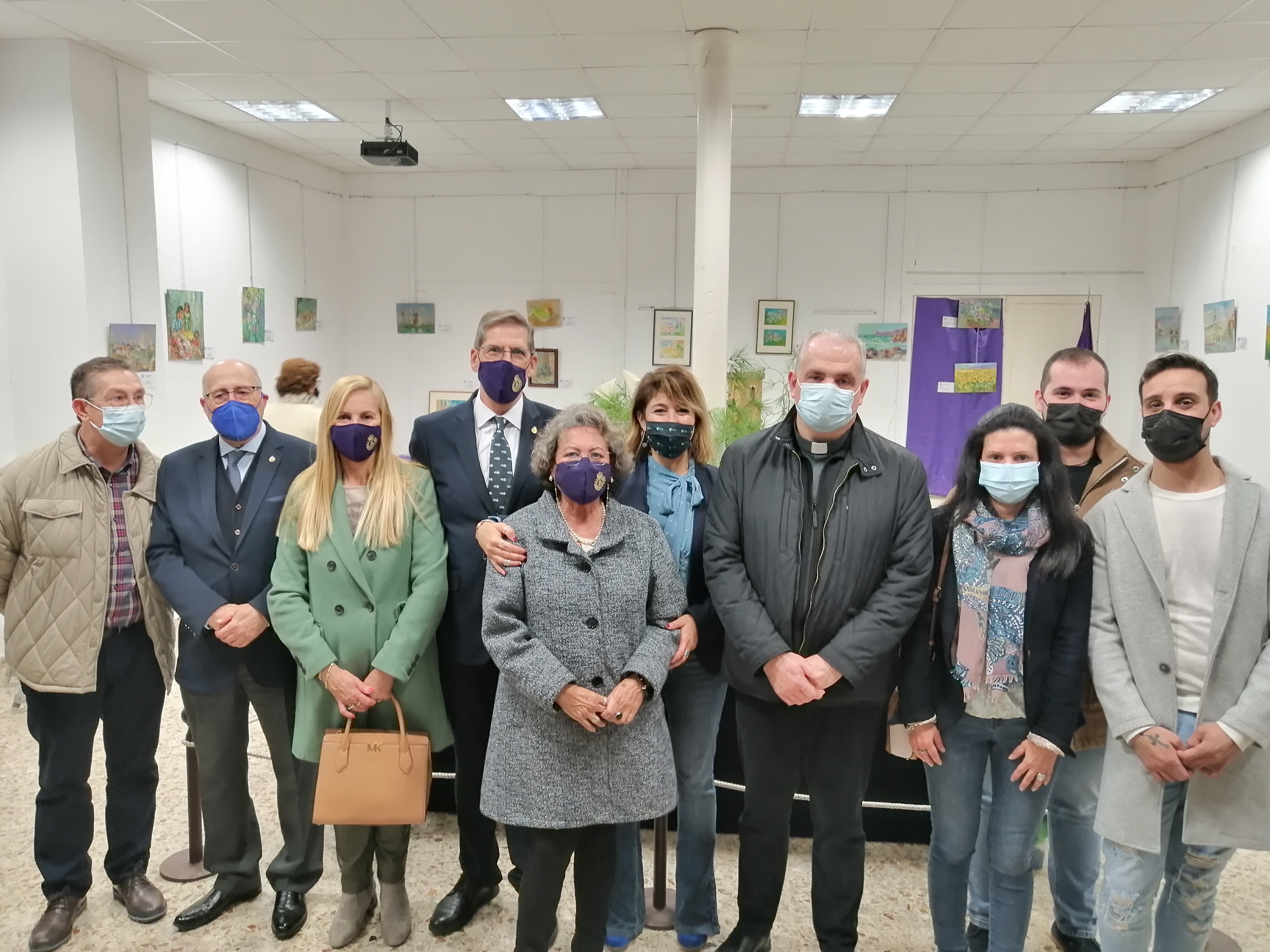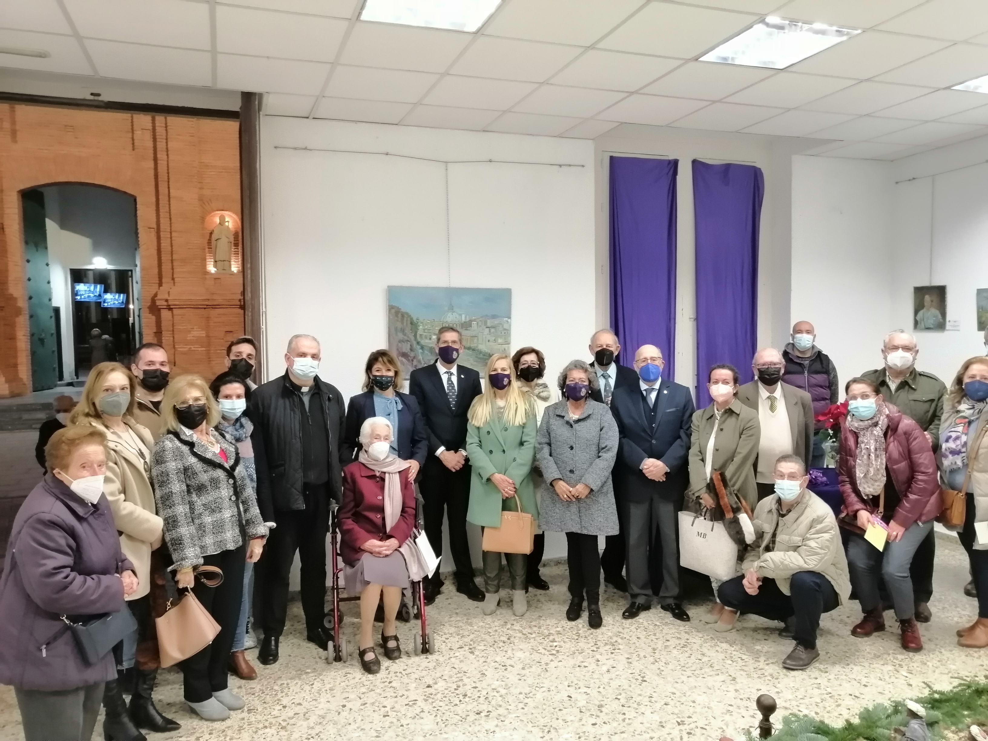 En el acto de inauguración, que contó también con la asistencia del capellán marrajo, Fernando Gutiérrez, la Comisaria de Caridad marraja, Mariana Larios y la responsable de Juventud de la Cofradía, Eva Hernández, se bendijo igualmente el belén monumental realizado por los Jóvenes Marrajos, que está situado en la misma sala que la exposición de pintura.