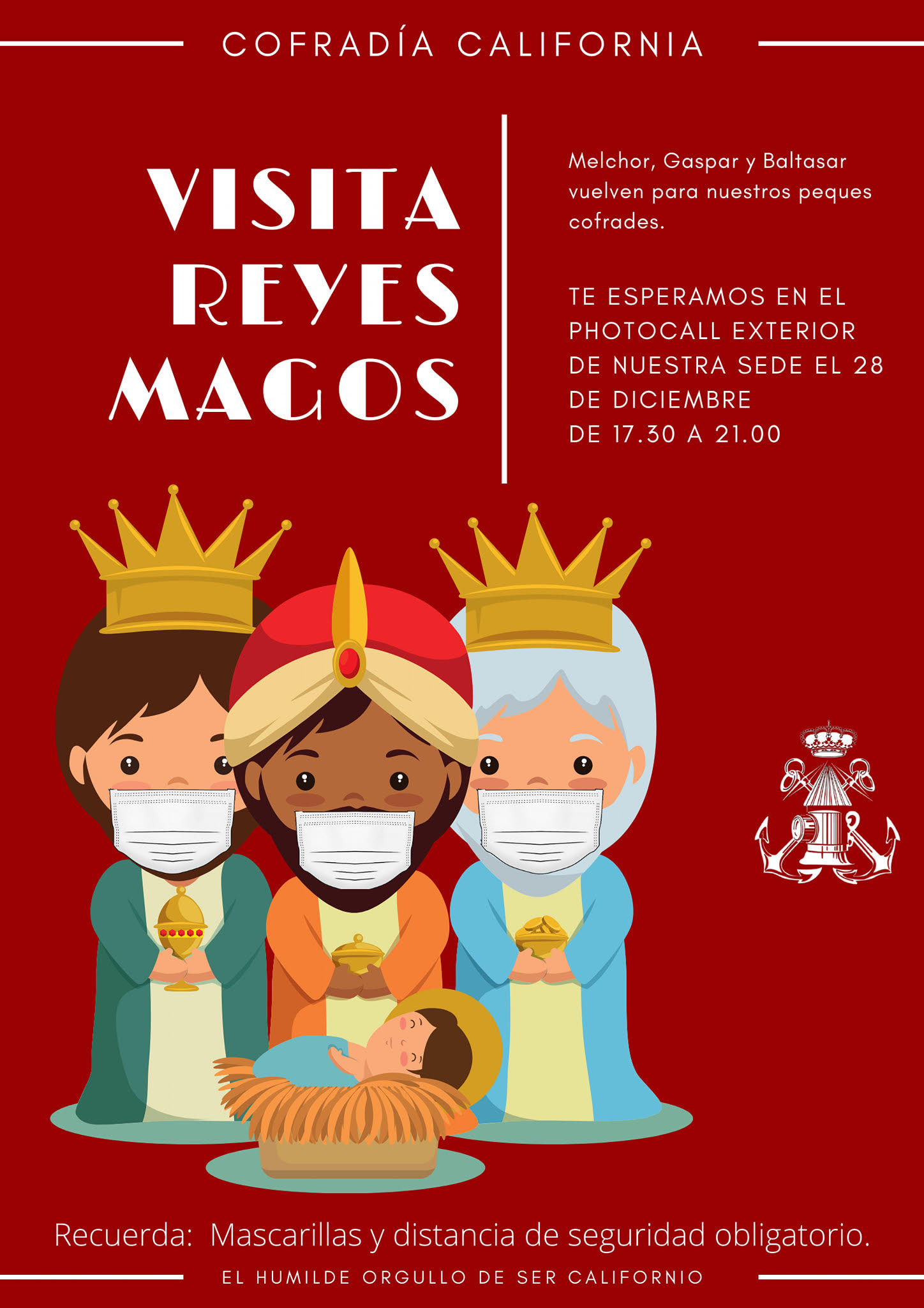 Los Reyes Magos llegarán este martes a la Cofradía California. Los más pequeños podrán entregarle sus cartas de 17:30 a 21 horas en la Cofradía. Además, esa misma mañana en horario de 10 a 13 horas y de 17.30 a 21 horas, se recogerán juguetes en la Cofradía para que los niños de las familias más necesitadas tengan también su regalo esta Navidad.