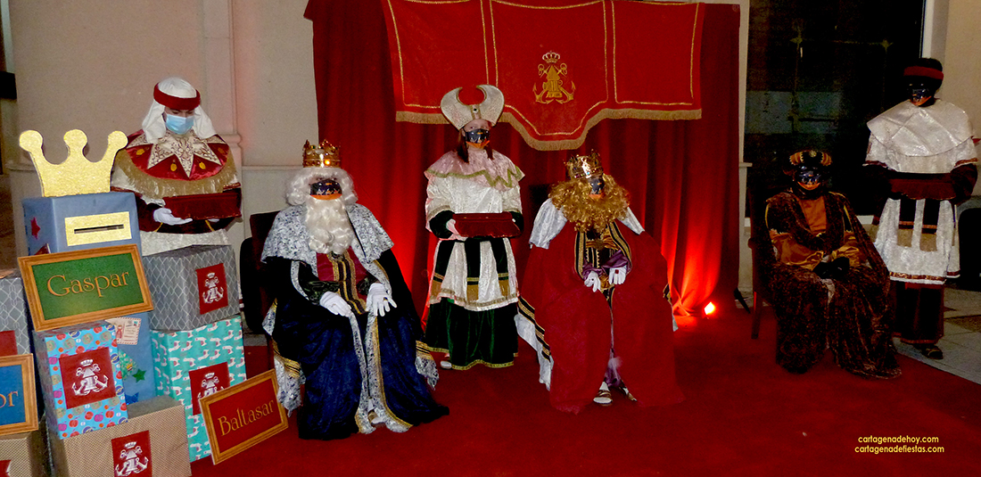 El acto organizado por las diferentes áreas de la Cofradía de Jesús en el Paso del Prendimiento es el primero de este año en Cartagena con los Magos de Oriente, que ya toman el relevo de Papá Noel y serán los grandes protagonistas en los próximos días por diferentes puntos del municipio. La tarde procesionista en la calle del Aire se completó con una recogida de juguetes para entregar a familias necesitadas.
