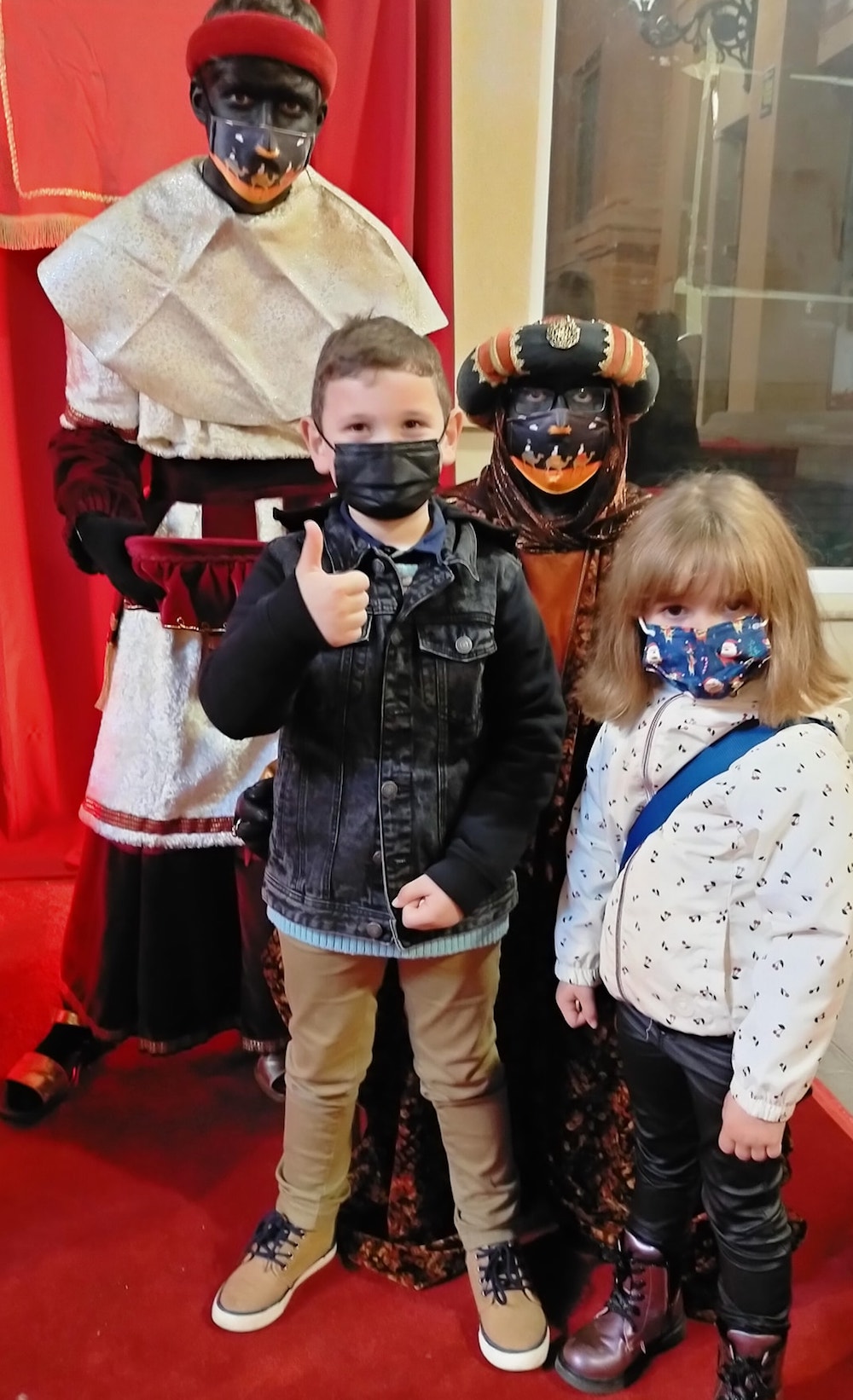 Los Reyes Magos y sus pajes, que llegaron con más de media hora de retraso (no se saben si por problemas con la ‘estrella GPS’ o con el certificado covid), estuvo formado por Santiago Ferrer, José María Soler y Miguel García como Melchor, Gaspar y Baltasar, con Raúl Miralles, Sergio Ferrer y Lara Rosell, como pajes.