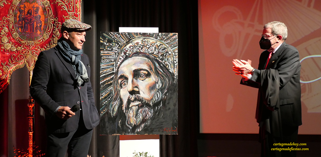 Después se ha presentado el cartel oficial, obra del sevillano Rafael Areal Delgado, integrante de un saga de pintores, quien ha expresado ante los asistentes que ha querido “darlo todo” con esta nueva obra, en la que ha recogido el rostro del Cristo del Prendimiento “con un toque moderno”. A continuación, Noemí Toral, mediante un vídeo, ha explicado el logo que ha diseñado. Esta procesionista andaluza, quien inició su contacto con Cartagena cuando vino a trabajar como restauradora en el Teatro Romano, ha explicado que ha querido remontarse “a la época dorada de la cartelería, que fue entre los años treinta y sesenta del siglo XX”. Su trabajo muestra a un sayón que sostiene una linterna “cuya luz el tiempo no ha logrado extinguir y que alumbra hacia el futuro”.