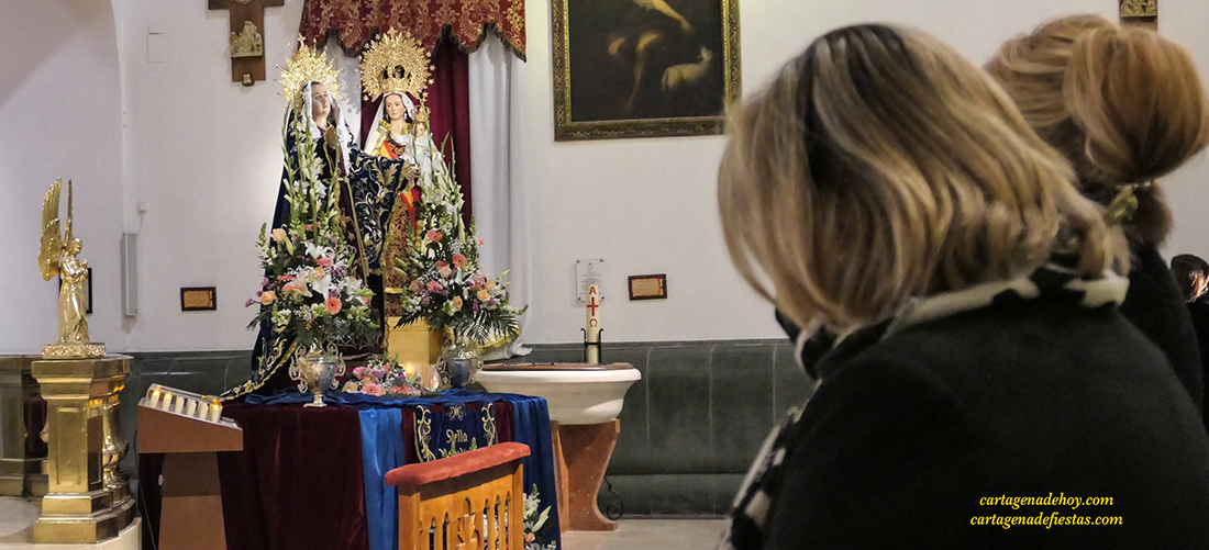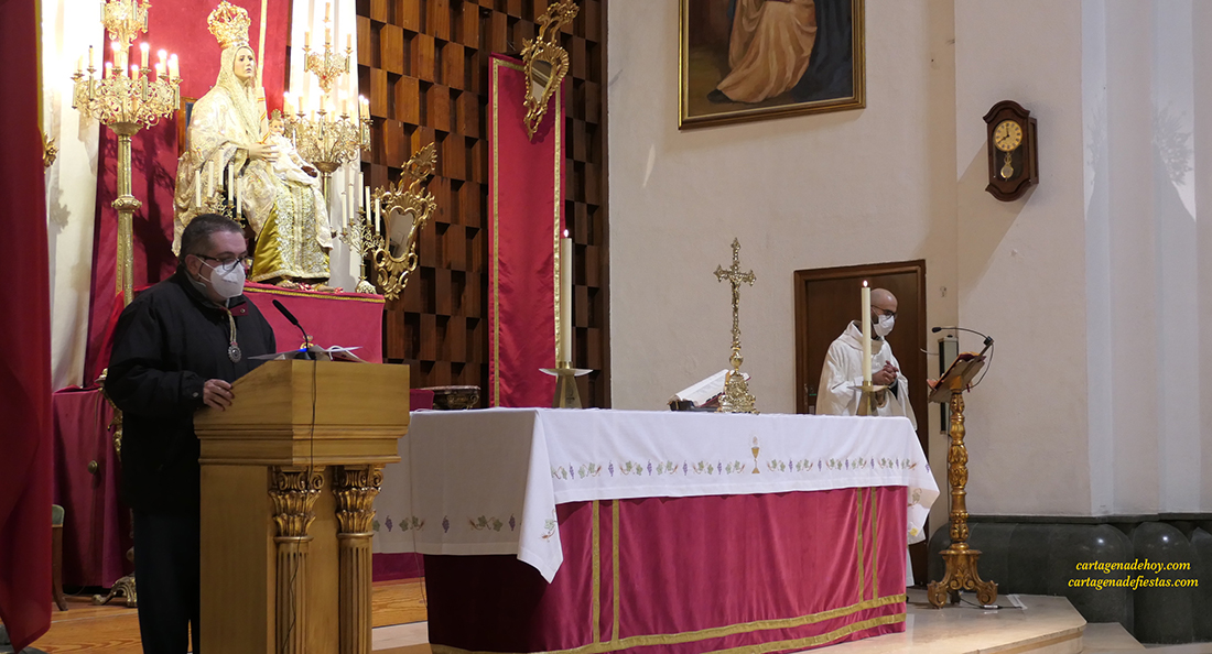 La agrupación de la Santísima Virgen de la Soledad de la Cofradía de Nuestro Padre Jesús Nazareno (Marrajos) celebró en la iglesia de Santo Domingo la tradicional eucaristía dedicada a la Virgen Dolorosa, imagen que sale en procesión en la madrugada del Encuentro.