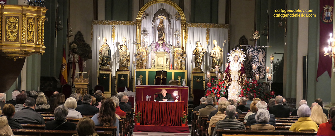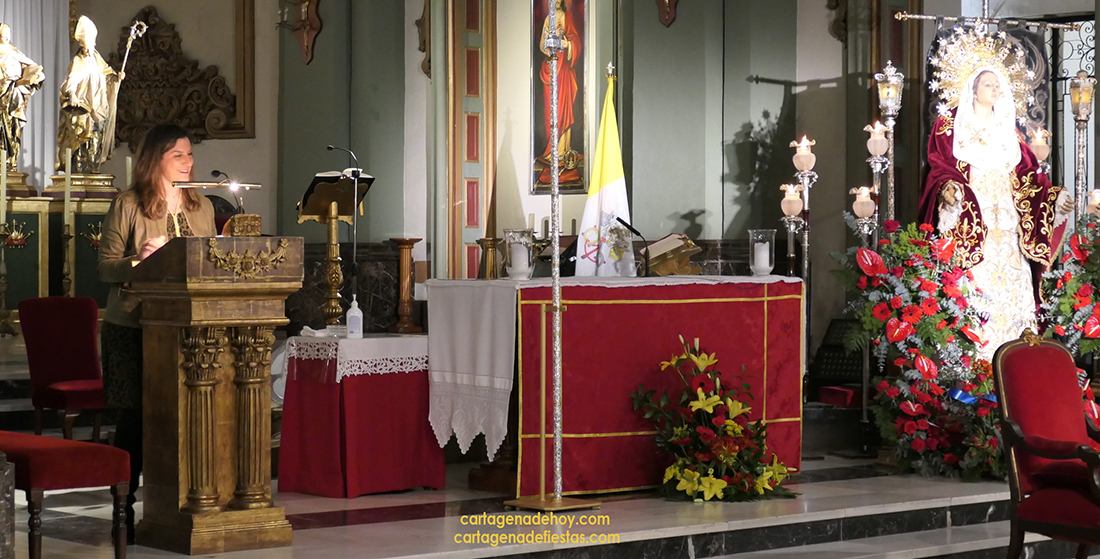 El sacerdote Ángel Obradors Rosique ofreció en la iglesia de Santa María, ante una imagen del Primer Dolor envuelto en un mar de tulipanes rojos, el pregón de apertura de los actos del 75 aniversario de la llegada de la imagen que creó el imaginero Mariano Benlliure, cuyo programa ofrece esta noche un concierto de la ‘Capilla de música de Cartagena’, mientras que el domingo tendrá lugar la eucaristía de veneración del vigésimo segundo aniversario de su coronación canónica.