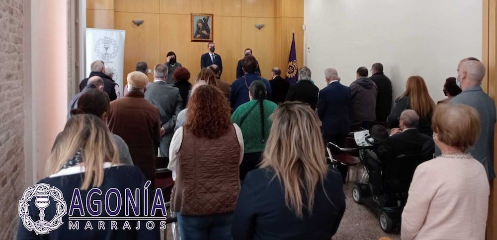La publicación en papel que edita la agrupación marraja de la Santa Agonía, Vera Cruz y Condena de Jesús fue presentada ayer en la sede de la cofradía pro parte de Elisa Ferrández Bernal, a quien se observa con el hermano mayor (Francisco Pagán) y el presidente de la agrupación (Agustín Alcaraz), mientras que el día 26 marzo coinciden en fecha y hora (siete de la tarde) las revistas californias de ‘El Flagelo’ y de ‘Cruz Misericordiae’ que ofrecen las agrupaciones del Cristo de la Flagelación y del Cristo de la Misericordia, siendo los lugares donde se presentará el centro cultural El Luzzy y la Real Sociedad Económica de Amigos del País, respectivamente.