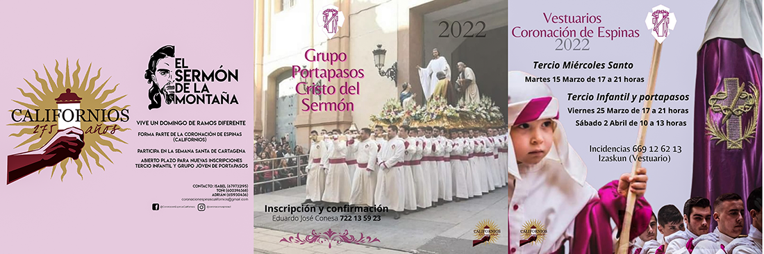 La agrupación california y el colectivo vecinal de Cartagena Norte, en cuya parroquia se venera al Cristo de Sermón, inician una colaboración para potenciar las tradiciones y para facilitar la incorporación de nuevos procesionistas. Por otro lado, los ensayos para la Semana Santa 2022 ya han comenzado y para el 26 de marzo se fija la cena de entrega de galardones.