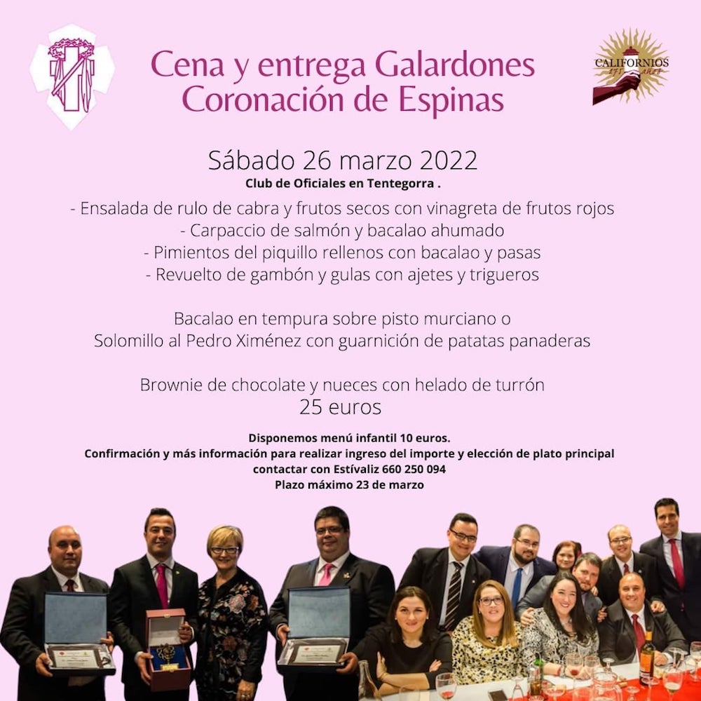 Por último, indicar que la cena de entrega de galardones se celebrará el último sábado de este mes. Reservas hasta el 23 de marzo en el teléfono 660 250 094
