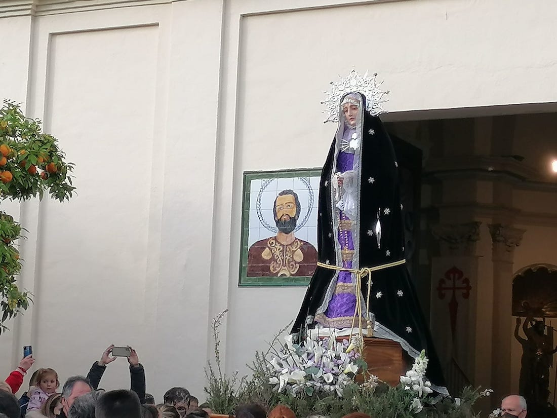 A su llegada ha tenido lugar la misa en su honor. En la iglesia de Santiago Apóstol estará la Virgen hasta que el próximo viernes por la noche salga para protagonizar la segunda edición del encuentro con Cristo crucificado en las calles de la villa, para después regresar junto a la parroquia. El próximo domingo, 27 de marzo, a las nueve de la mañana, tendrá lugar una misa tras la que se iniciará la romería de regreso hacia el monte del Calvario, donde a las 12.30 horas tendrá lugar una solemne eucaristía.