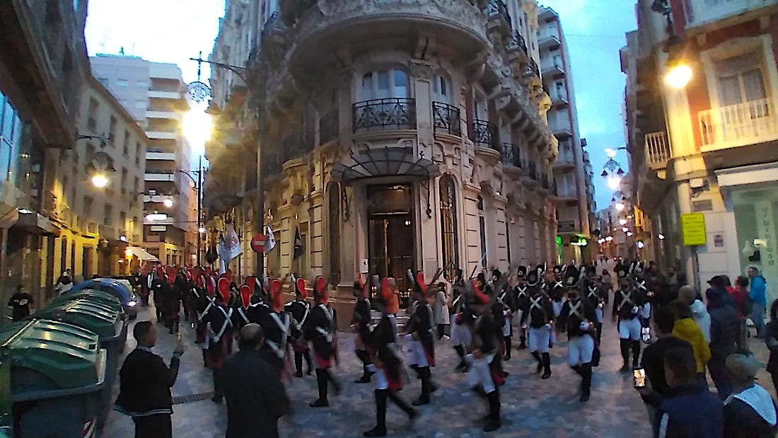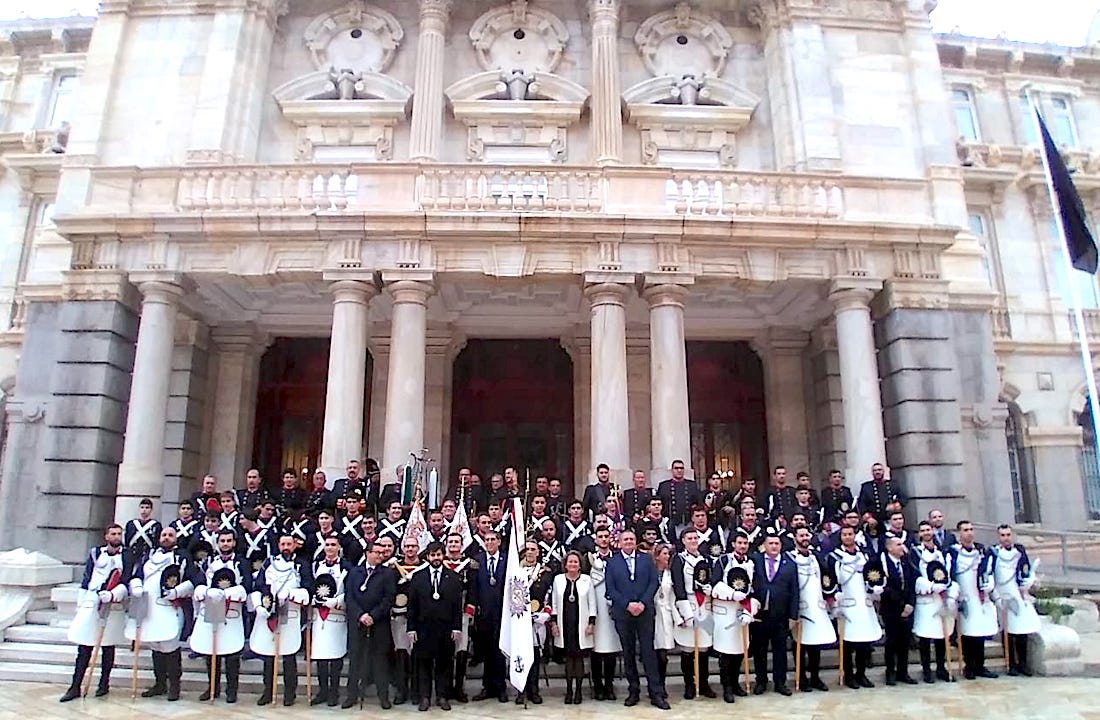 El acto de esta mañana también ha servido para la entrega de una decena de medallas a fusileros y granaderos de la agrupación, llevando a cabo las entregas la alcaldesa, Noelia Arroyo; le teniente coronel de Infantería de María del Tercio de Levante, Francisco Javier Criado Cayuela; el hermano mayor marrajo, Francisco Pagán; el director de la Escuela Albacete y Fuster, Francisco Díaz García; el presidente de la agrupación, Miguel Acosta; la Nazarena Mayor, Pilar Giménez Rubio; la edil Cristina Pérez; la presidenta de la junta de damas de la cofradía y la madrina de los granaderos, Mariana Larios Andreu, además de Juan Martínez Jumilla, quien fue elegido ‘Morrión de oro’ a finales de febrero de 2020 y cuya distinción, debido al paréntesis pandémica, prolonga este año.