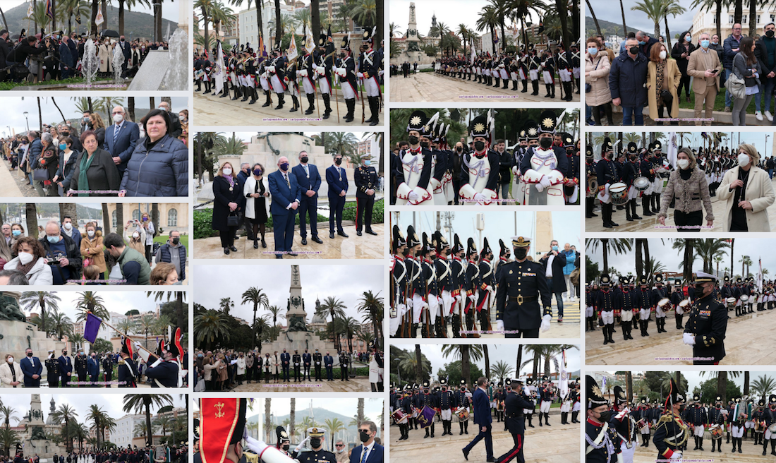 Después, con chaparrón de agua y despliegue masivo de paragüas (que no total), el marrajo marrajo Ginés Fernández Garrido ha ofrecido un recuerdo entrañable de José Luis Sáez Martínez, para concluir anunciando que la agrupación de Granaderos le otorgaba, a título póstumo, la gran cruz, su máxima distinción, la cual ha recogido su hijo, secretario general de la hermandad, y que había sido el maestro de ceremonias del acto, el cual también ha incluido una revista a las tropas y el homenaje a los caídos, poniendo el final un desfile que ha ofrecido el popular ‘caracol’ en la explanada del puerto. También destacar que ha sido novedad que un tambor de guerra de la Agrupación Cartagena 1990, que ha protagonizado el capítulo musical de la mañana, lucía un dibujo de Martín Álvarez: pinchar aquí
