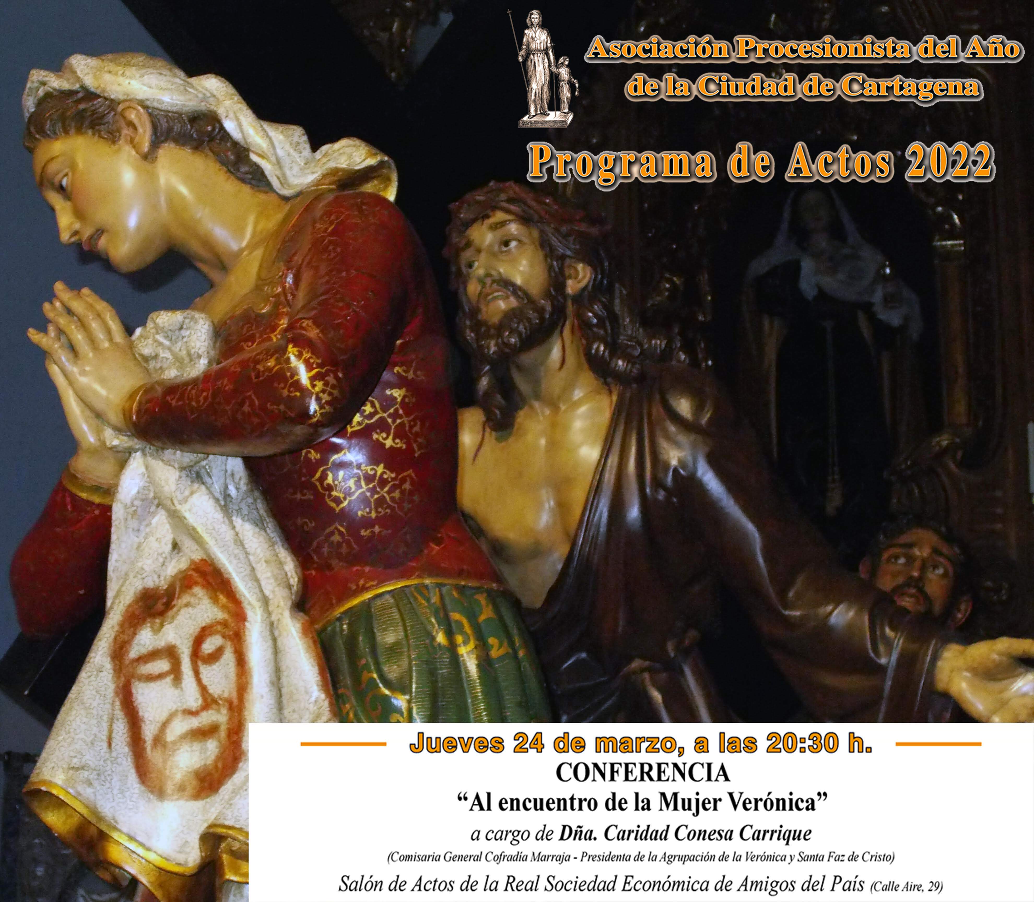 La presidenta de la Agrupación la Verónica y Santa Faz de Cristo impartirá esta tarde a las 20.30 horas la conferencia 'Al encuentro de la Mujer Verónica'. Será a las 20.30 horas en la sede de la Real Sociedad Económica de Amigos del País.