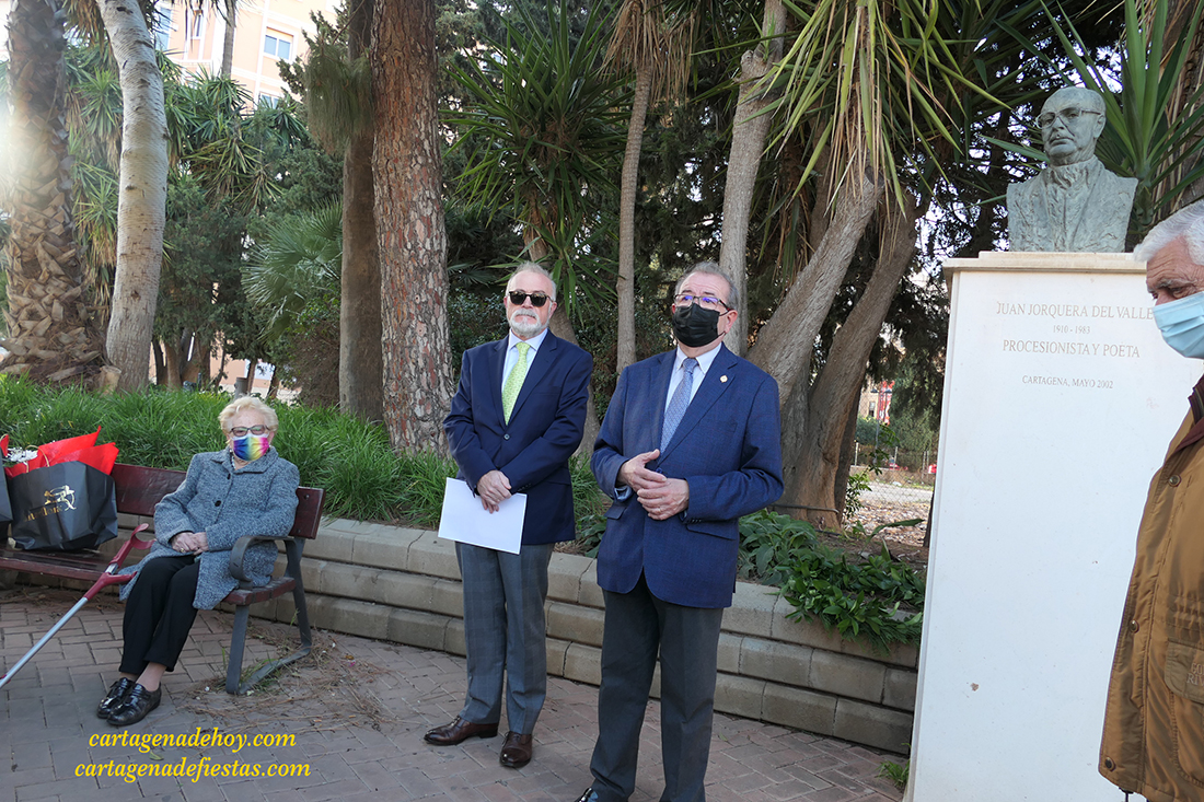 Andrés Hernández Martínez ha sido el encargado de ofrecer la semblanza de quien llevó a cabo en el siglo XX la tercera constitución de la Cofradía del Socorro, de quien también ha dicho que de "su espíritu crítico surgía su creatividad. Era un ejemplo claro de lo que era nuestra Cartagena", además de ensalzar el Vía Crucis de la madrugada, el esfuerzo del buen procesionista y de afirmar que la hermandad es "refugio" de procesionistas de "uno y otro origen, con humildad y respeto, alejándonos de la luz y el color, la otra cara de nuestra Semana Santa". El acto, celebrado ante el busto del recordado procesionista, ha contado con la presencia de su hija Rafaela.