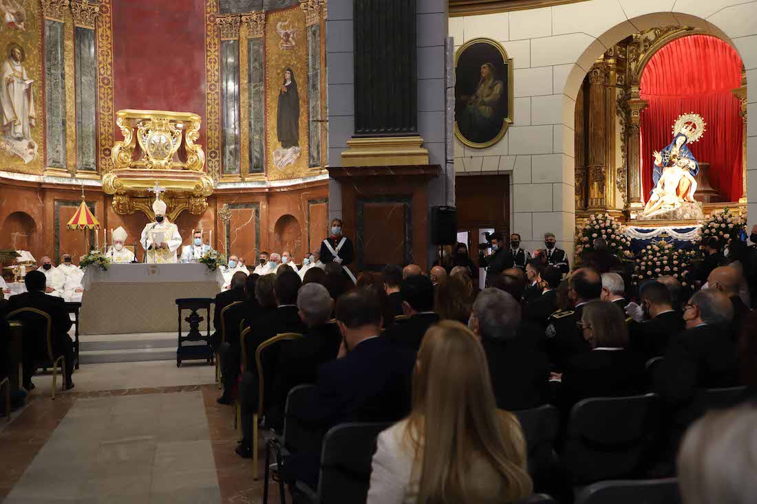 Al entrar al templo, la alcaldesa ha dejado de portar en bastón de mando de la ciudad en señal de respeto a la Virgen de la Caridad, que desde 1994, en que fue nombrada por el Ayuntamiento, ostenta el título de Alcaldesa Perpetua de Cartagena.