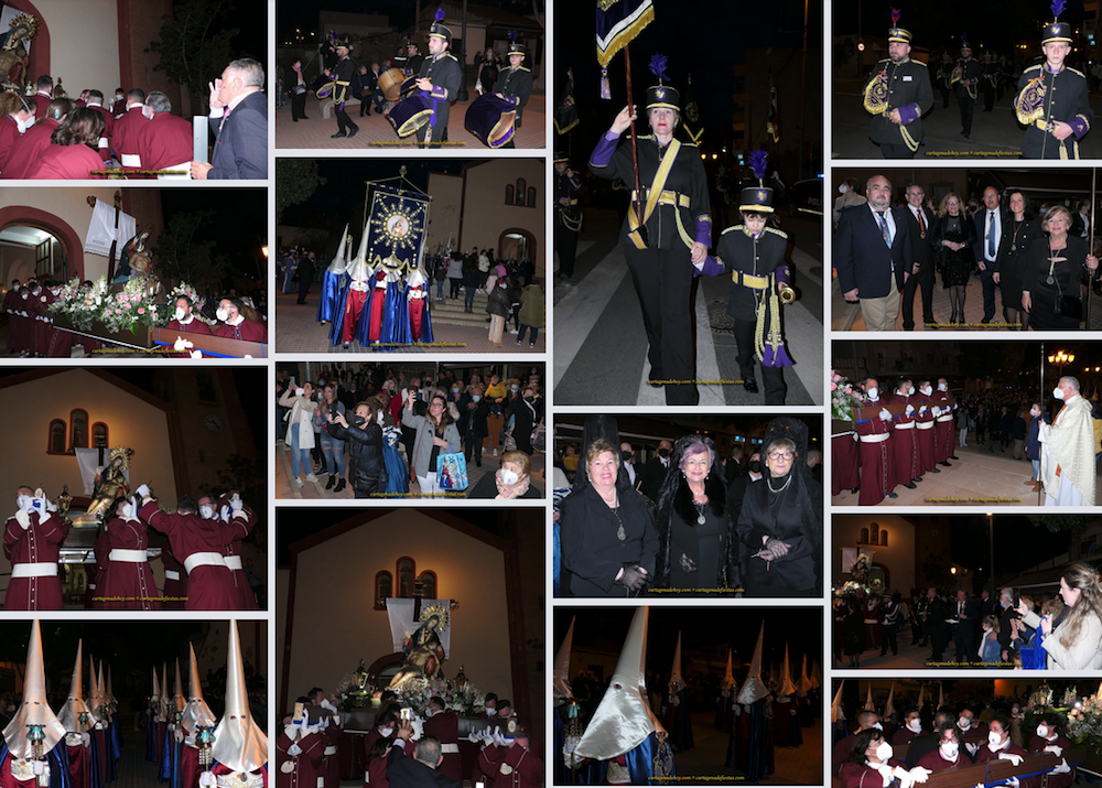 Fue una noche especial también para Juana Sánchez Martínez, pues era su primera procesión desde que es hermana mayor de la Ilustre Cofradía de la Santísima Virgen de la Caridad de Alumbres debido a la ausencia de actividad pasionaria en la calle durante 2020 y 2021. Su antecesor, Jesús Bascuñana, ejerció anoche como capataz del trono.