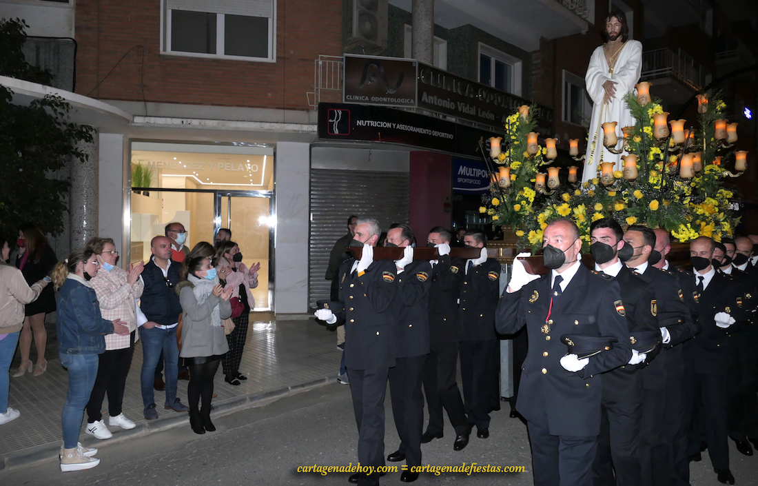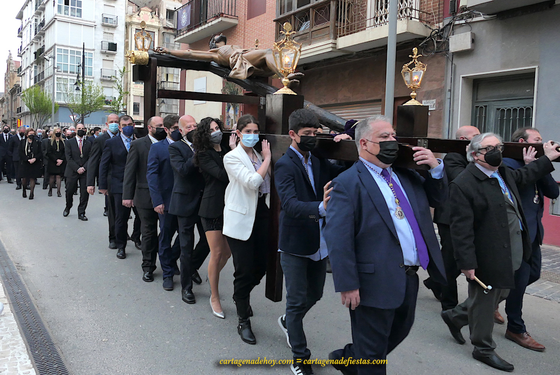 La tarde de los traslados también ha regresado a la Semana Santa de Cartagena y nuevamente la ciudad ha vivido un tránsito por distintos recorridos con siete imágenes, una menos que hasta 2019, pues entonces también formaba parte de esta jornada la Soledad de los Pobres marraja cuando se le rendía culto en la iglesia de San Diego, pero ahora es Santo Domingo su casa.