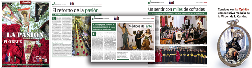 El suplemento especial de Semana Santa de Cartagena de 2022 elaborado para el diario regional desde hace 25 años por el director de 21DEhoy agenCYA (empresa editora del periódico Cartagena de Hoy) resultó todo un éxito en los quioscos por su amplio contenido de información y reportajes en 24 páginas como por la medalla de la Virgen de la Caridad que se obsequiaba. Quien no haya podido hacerse con un ejemplar todavía puede conseguir.