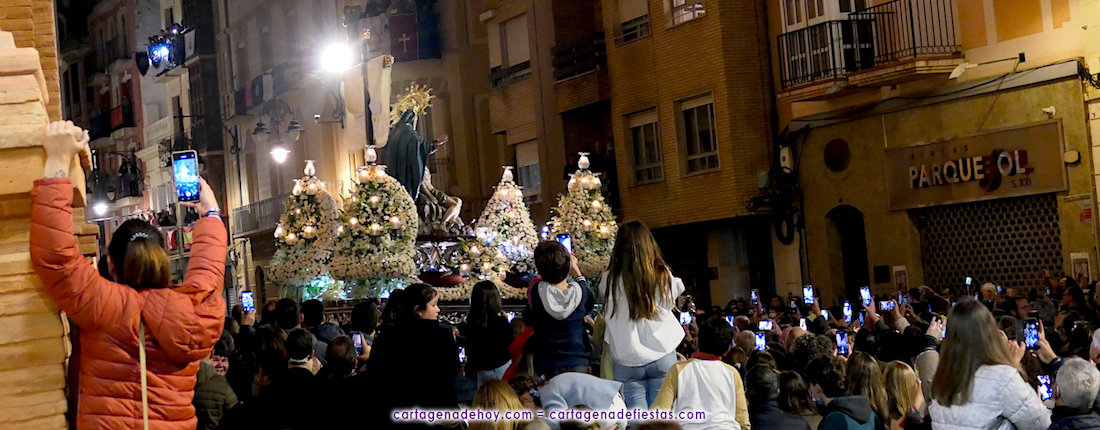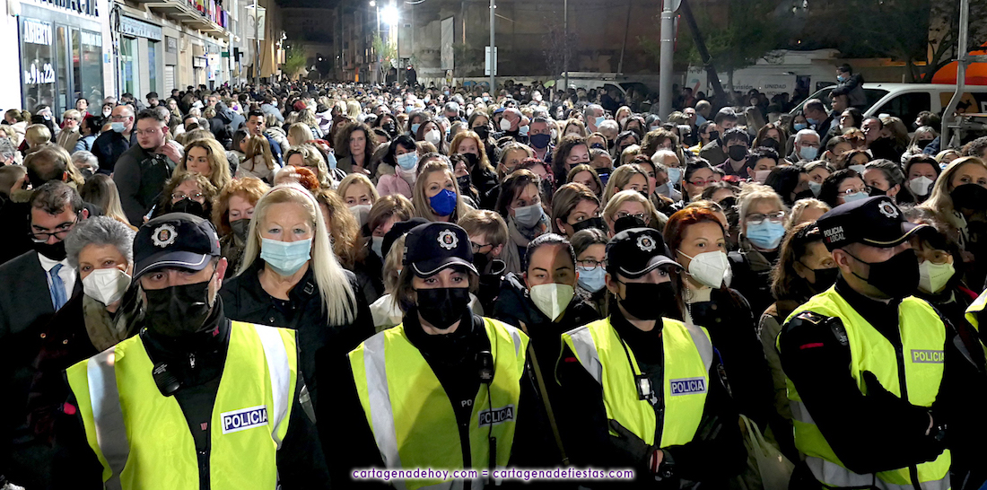 Destacar el númeroso público asistente y el tiempo, tanto el climático, que respetó, como el horario, cumpliéndose los previsto. Como era de esperar, la cola de la procesión fueron miles y miles de promesas tras una barrera humana formada por nueve agentes de la Policía Local de Cartagena.